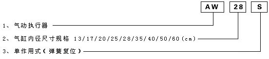 基本設(shè)計:氣動雙氣缸雙活塞拔叉式傳動機構(gòu);型號AWxx=雙作用式;型號AWxxS=單作用式(彈簧復(fù)位)。 |